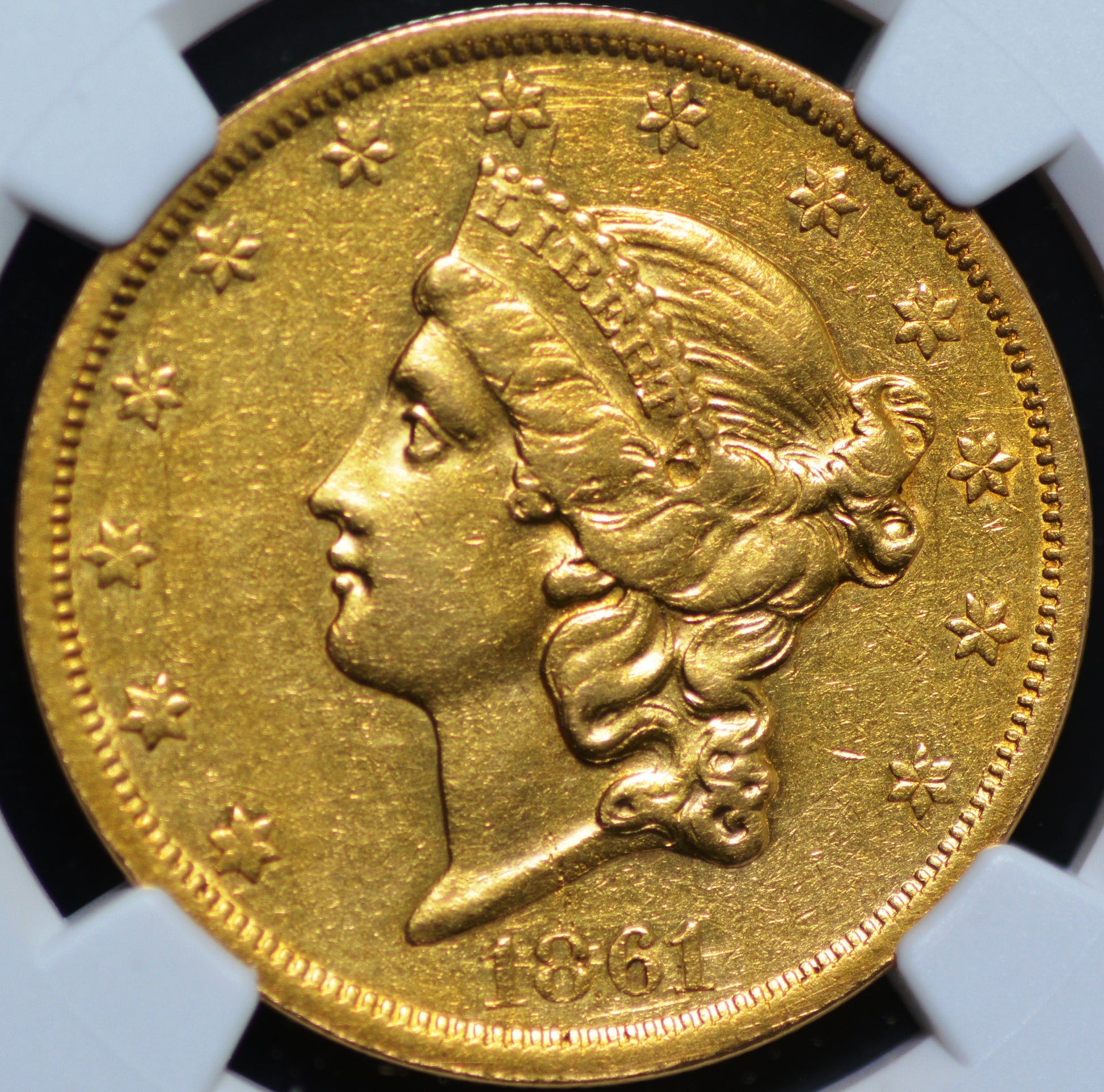 The 1861-S Paquet Reverse Double Eagle is one of the rarest varieties in the series, with a mintage of approximately 19,250 coins before production was halted due to design concerns. Surviving examples in AU condition are exceedingly scarce, as many were heavily circulated or melted, making this coin a true numismatic treasure.